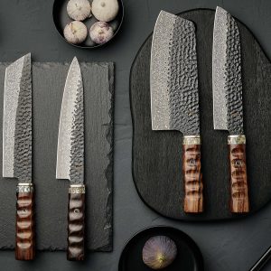 - Die gehämmerte Klinge sieht nicht nur atemberaubend aus, sondern sorgt auch dafür, dass das Schnittgut leicht von der Klinge abfällt und nicht hängen bleibt. Das sorgt für ein einzigartiges Schneideerlebnis und spart Zeit.