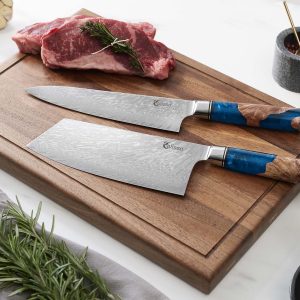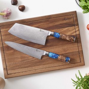 Das Performance Set eignet sich für auserkorene Küchenprofis und diejenigen, die es gerne werden wollen. Das Chai Dao, der chinesische Alleskönner, ist mit seiner leicht gebogenen Klingenform und seiner außerordentlichen Klingenschärfe aus keiner professionellen Küche wegzudenken. Unser Chefmesser ist indes ein wahres Universalgenie, mit dessen langen Klinge Sie aus jedem Kocherlebnis das Beste herausholen. Das ergonomische Design der beiden Allrounder sorgt dabei für stets komfortable Handhabung, durch die selbst ausgiebige Kochsessions zum Genuss werden.
