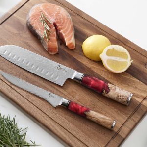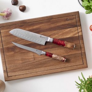 Sie gehören zu den experimentierfreudigen Pionieren unter den Köchen? Dann ist das Pioneer Set genau die richtige Wahl. Während Sie, mit dem gefeierten japanischen Allrounder Santoku, Fisch, Fleisch und Gemüse hauchfein zerlegen, schneiden Sie mit unserem filigranen Filetiermesser zarte Filets in hauchfeine Stücke und entfernen mühelos Sehnen und Haut. Komplexe Gerichte waren nie einfacher!